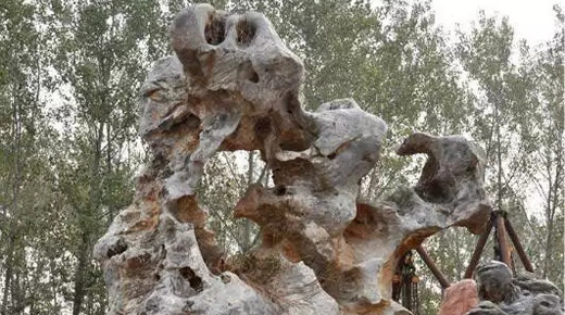 太湖石:是太湖之中的石灰巖巖石,經過長期波濤的沖擊和風化溶蝕而成。意趣天然的