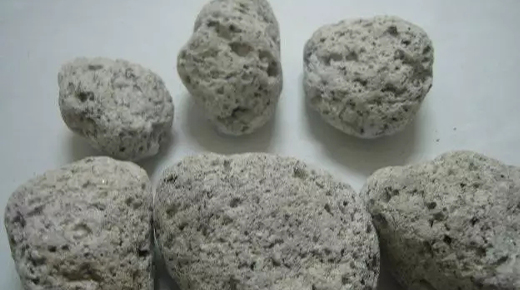 浮石:又名浮水石,灰黃、淺灰或黑色等,以灰黑色最好,系火山噴發熔巖泡沐冷凝而成。質地細