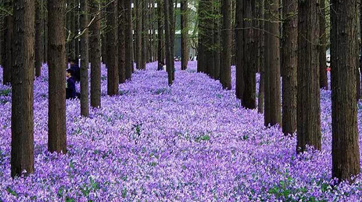 低矮叢生灌木花卉,一叢叢,一片片,聯為—體,形成樹的世界、花的海洋。置身其間,賞花美、