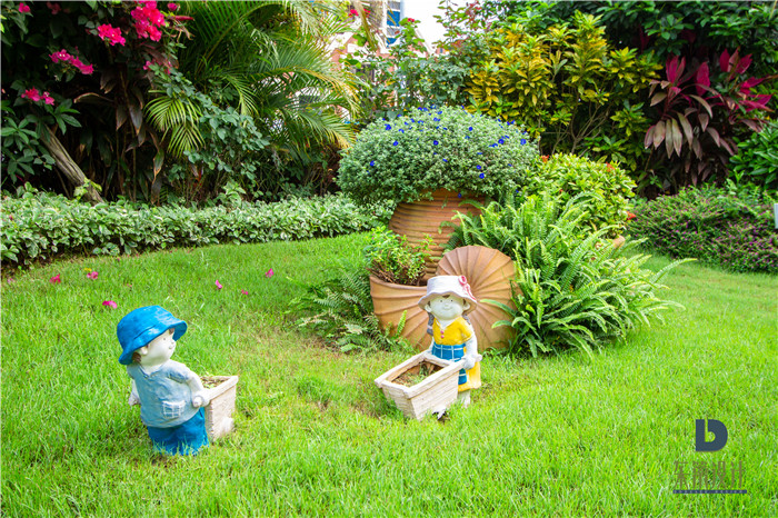 景觀小品方面,通過設(shè)計(jì)英式柱廊、雕塑、疊泉、花缽、花箱等景觀元素,配合組合擺放或者圍合等方式形成不同的空間以適應(yīng)不同的功能需求,營造出極致浪漫的具有濃郁英式風(fēng)格的生活情趣和氛圍。
