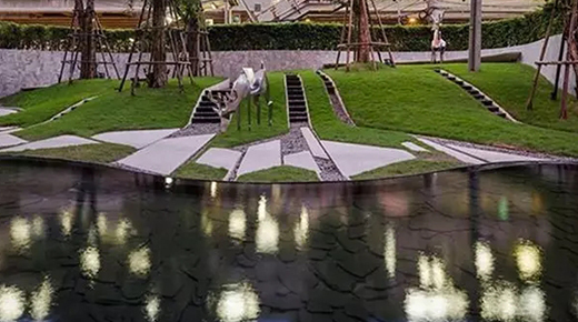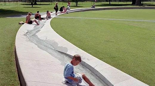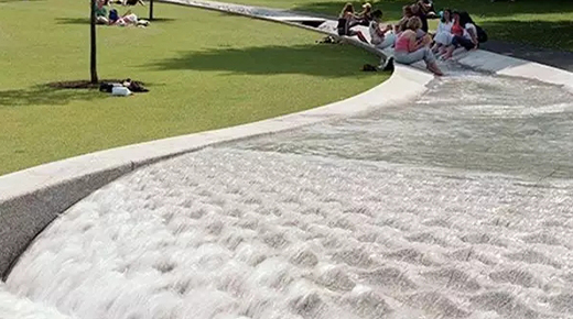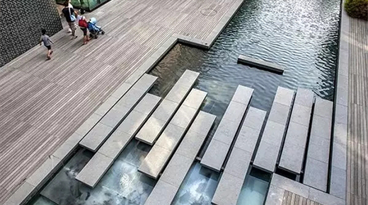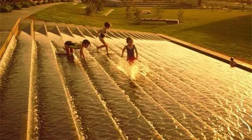 在戶外公共空間的景觀設(shè)計中,“水”這個元素絕對是不可或缺的,水的形態(tài)不同,構(gòu)成的景觀