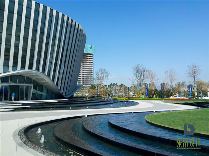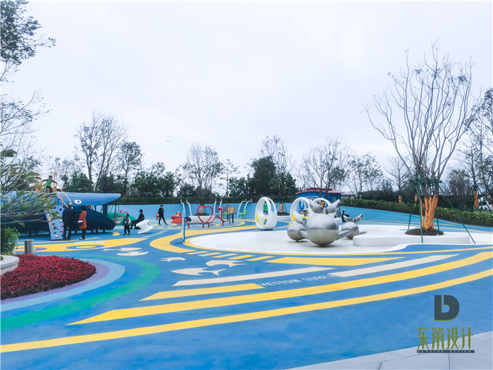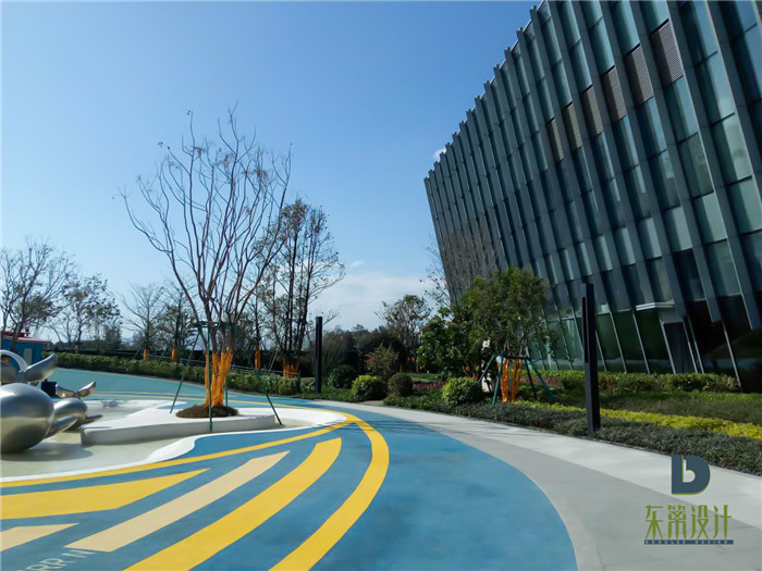 在景觀的打造中,以自然的律動打造美學之感,柔動的線條,噴涌而出的水柱,無不呼應著海上生活的樂趣。金茂·智慧科學城,東籬環(huán)境將景觀和建筑空間進行了深度融合。在游樂區(qū)空間建造中,采用高質(zhì)量的彩色塑料地墊進行鋪裝。藍色的地墊,配合多種不同顏色的線條,打造靈動之感。